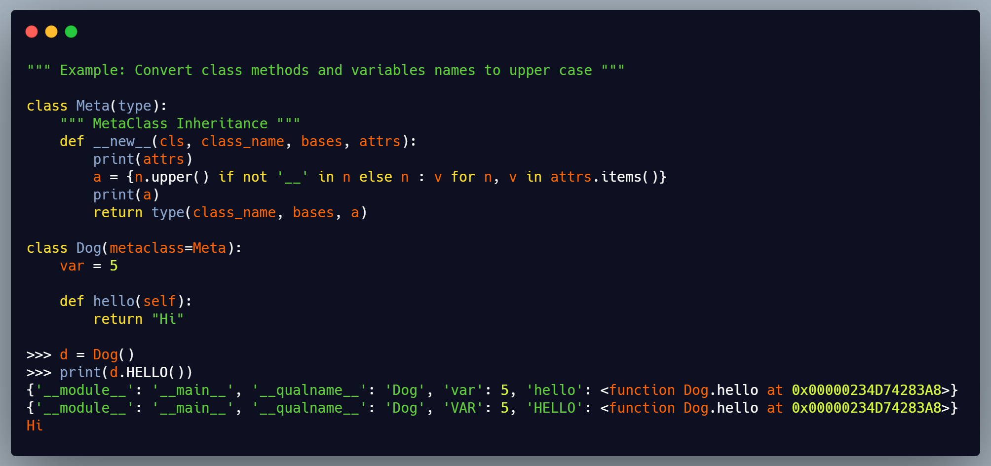 - Metaclasses can be used when a decorator needs to be applied to every function in a class.